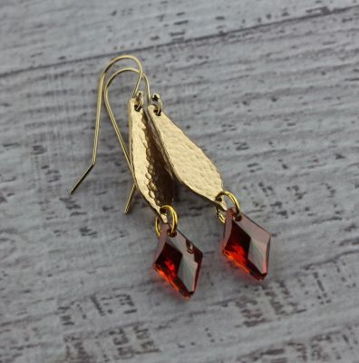 Gold Bronze Earrings with Swarovski Red Magma Crystals