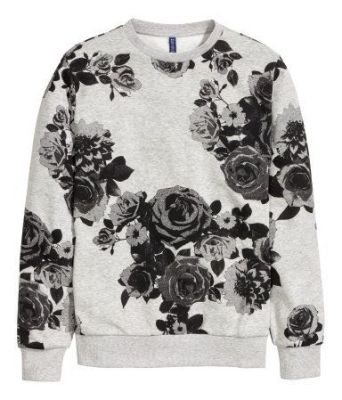 Graphic floral print sweatshirt in a soft grey melange cotton