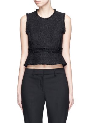 FRAYED TWEED SLEEVELESS PEPLUM TOP